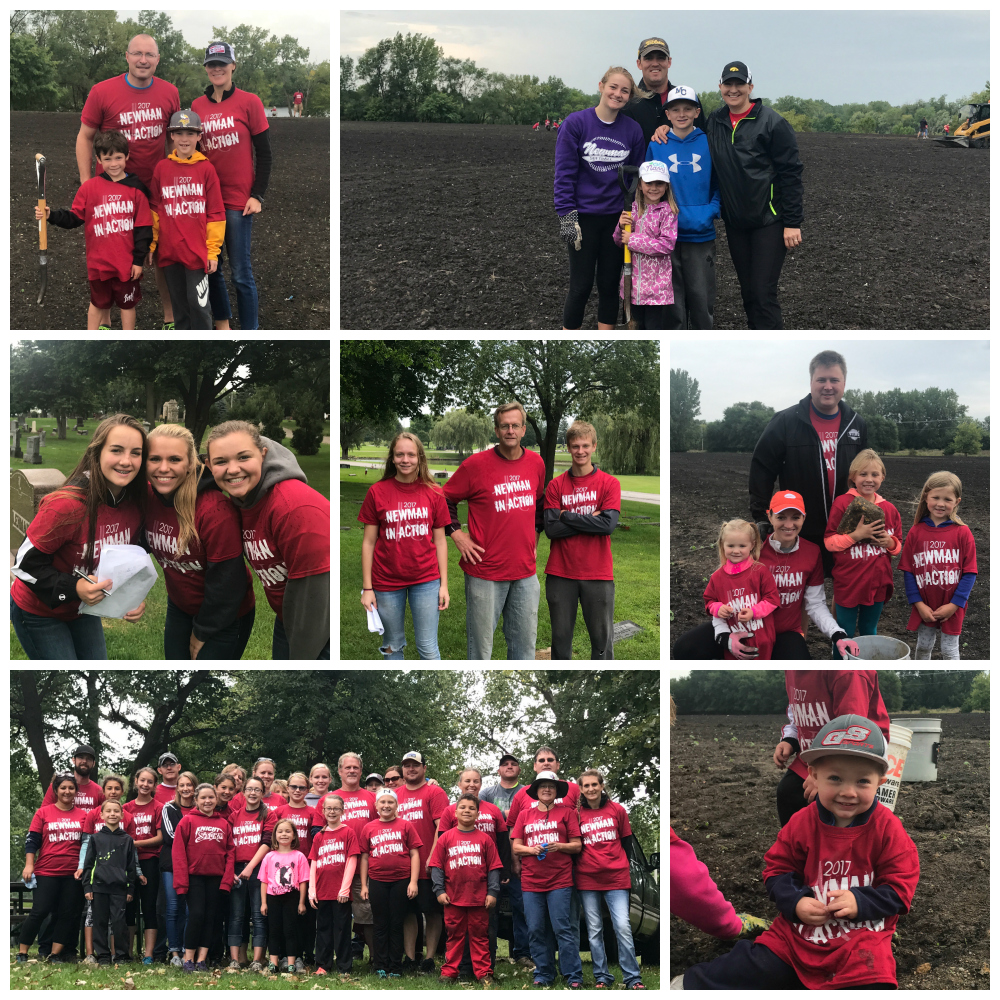 Alyse Hesley, with Thrivent Financial chaired this year's Newman In Action and Corporate Farmer generously sponsored the event, providing materials, t-shirts and lunches for everyone involved. It also kick-starts our multi-event God's Portion Day. Attached is a flyer about Newman In Action. It was a great way for the Newman family to show the community how grateful we are for their support of Newman Catholic Schools. Thank you to everyone who participated and helped to make it huge success for the second year in a row!